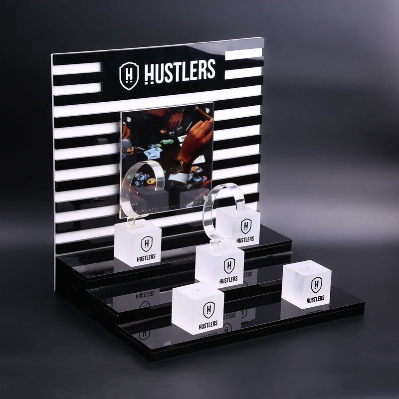 產(chǎn)品描述:亞克力手表展示架使用高亮度亞克力材料,具有色澤度好,顏色鮮艷的特點(diǎn),方便客戶展示多種不同款式的手表,另外我們?yōu)槟峁┝硕ㄖ品?wù),您可以自由選擇尺寸,款式以及圖案等。